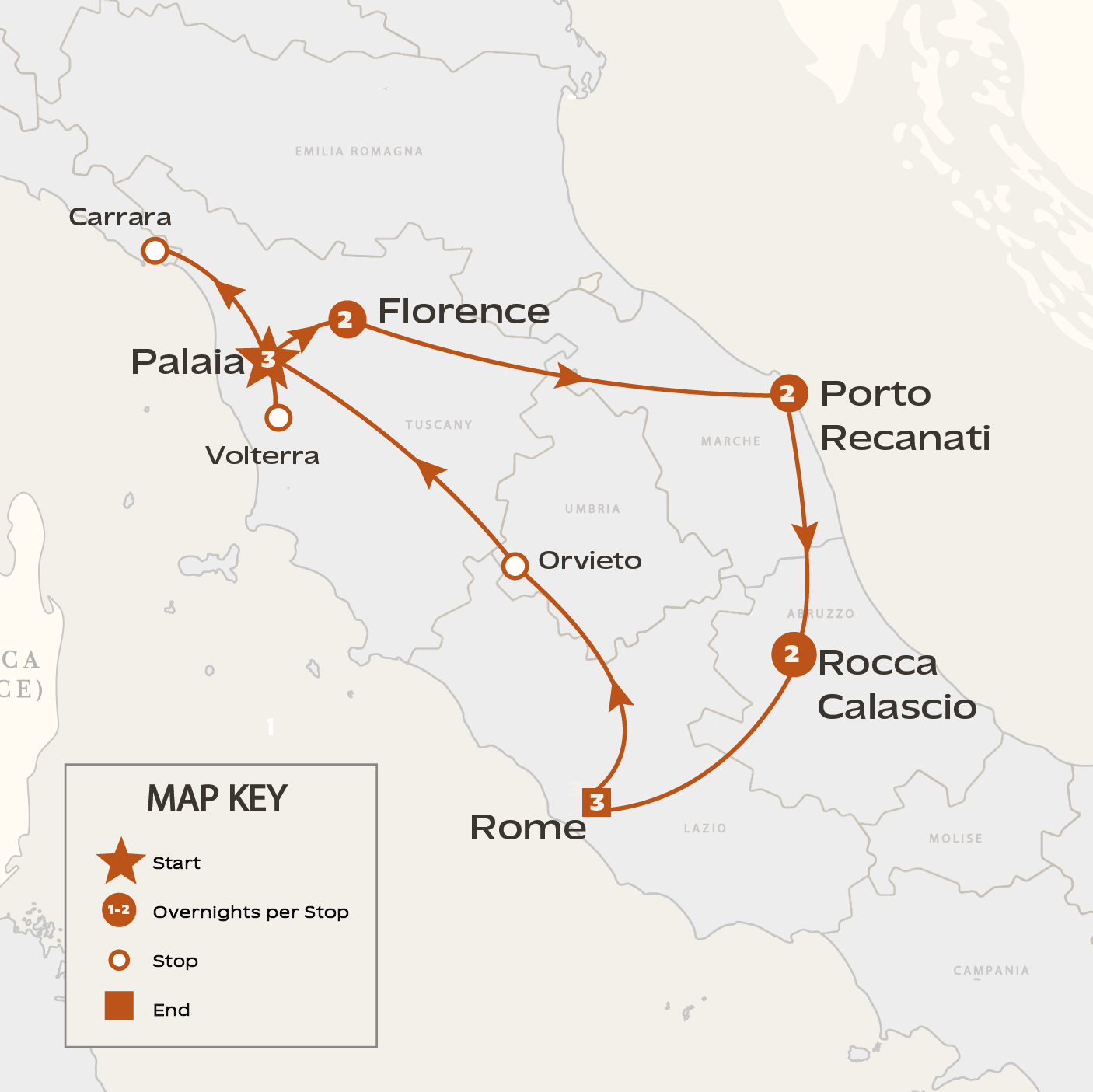 Departing Florence after breakfast, you'll head east toward the Adriatic coast and the region of Marche, where you'll stay for two nights in a typical agriturismo, an elegant countryside residence rooted in local agricultural life and tradition. Today will be dedicated to the Dolce Vita, the sweet life—whether sailing or lounging on the beach, you’ll practice the Italian art of relaxing by the sea.